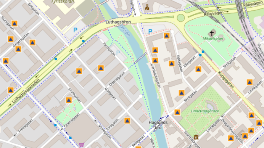 På MSB:s webbplats hittar du en karta över Sveriges alla skyddsrum. Vi kan konstatera att det finns skyddsrum på Svartbäcksgatan 41 och 43 och hos föreningen Gräsanden (Eddagatan) rakt över innergården.